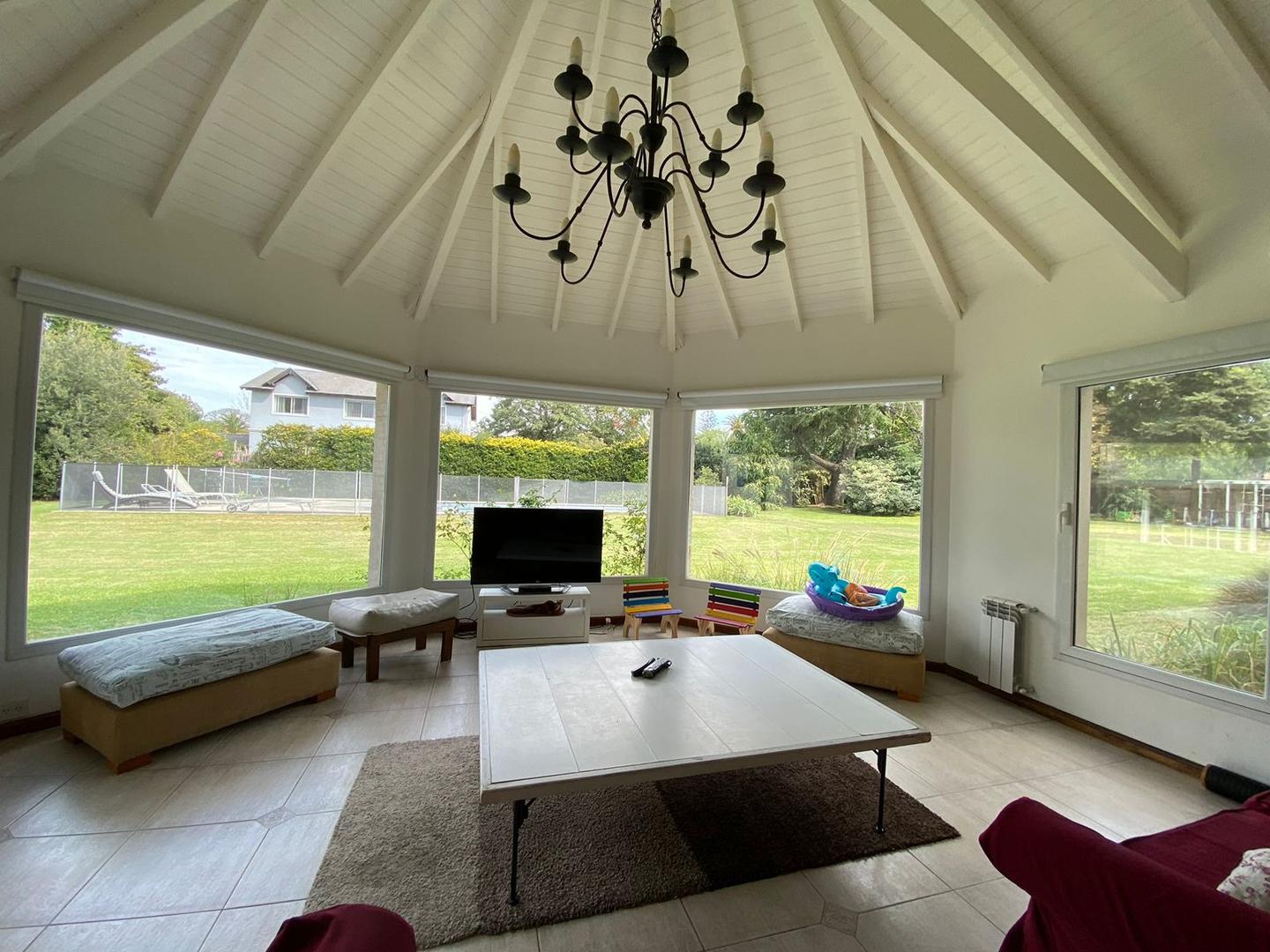 Quincho con parrilla, horno de barro con muy linda vista al extenso jardín. Fogonero. Cuarto de depósito de jardín. Un escritorio o estudio de música con paredes acústicas.