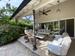 Amplio jardín parquizado bordeando en L a la casa. Pileta con filtro de 8 x 4 venecitas celestes, mas una playa húmeda de 2,5m de ancho cubierta en venecitas blancas. Muy linda segunda galería con salida desde el living comedor en formato de living exterior.